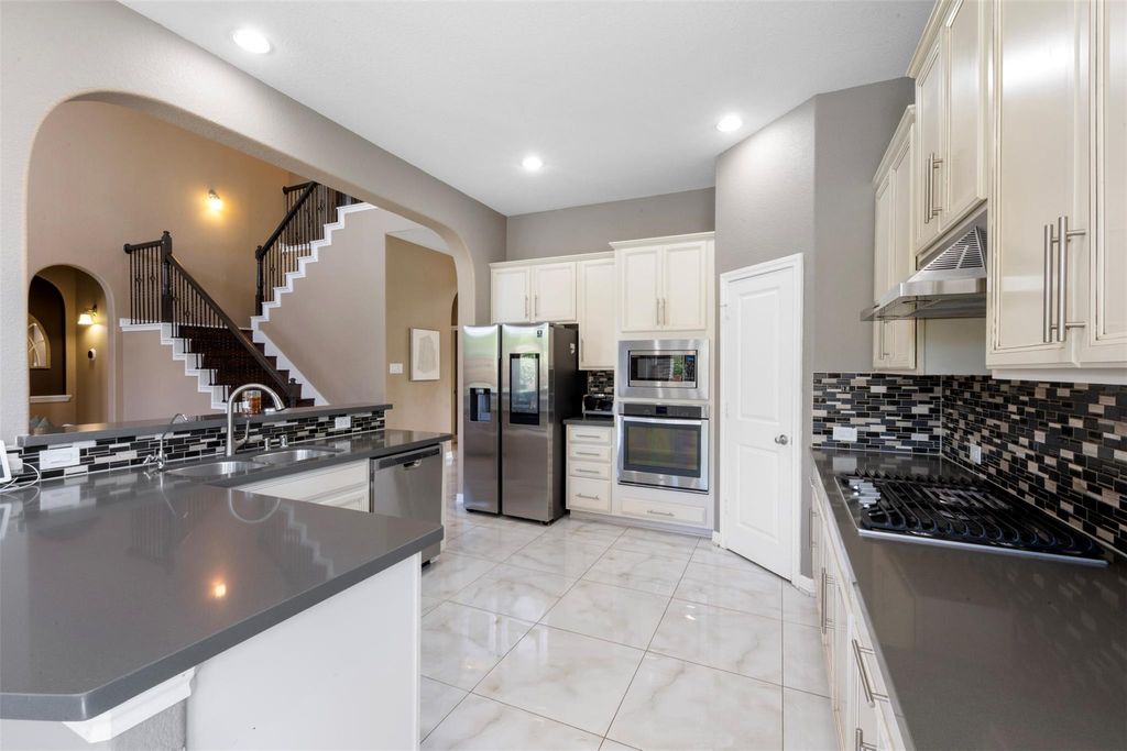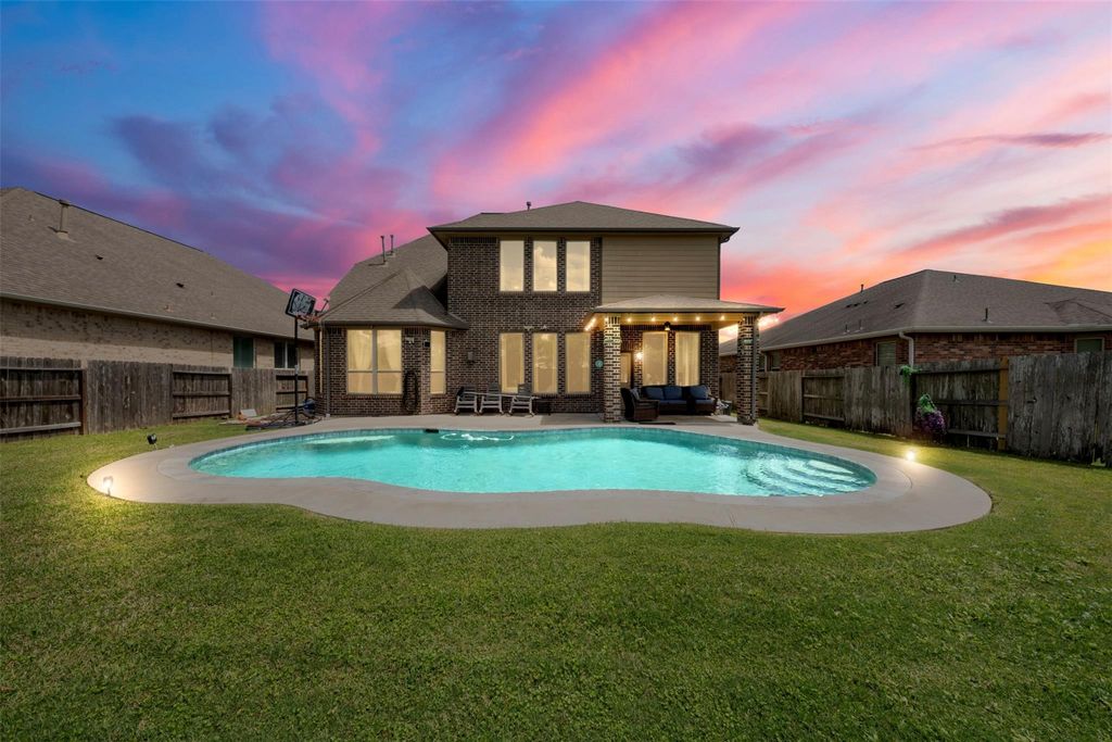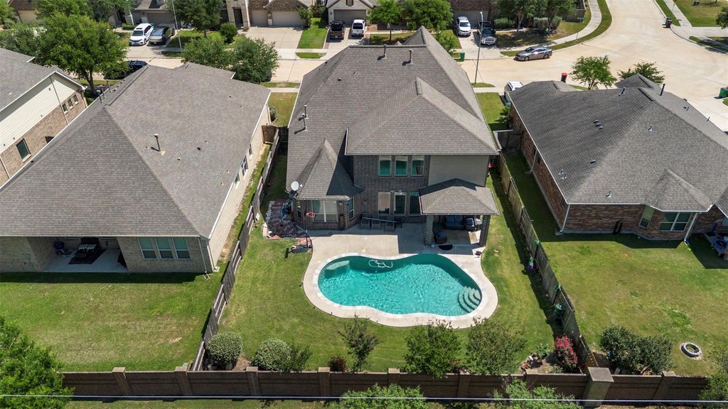 Unbeatable value in Creekside Ranch! Spacious 5-bedroom, 4-bath home with a 2-car garage offers the perfect blend of comfort, functionality, & lifestyle. Enjoy no back neighbors & a backyard designed for entertaining, complete with a beautiful pool & inviting sitting area, ideal for gatherings or relaxing evenings at home. The first floor features a formal dining room, a private primary suite, plus an additional bedroom and full bath—perfect for guests or multi-generational living. Open-concept living room & kitchen include a gas cooktop, abundant cabinetry, and plenty of space to gather. Upstairs, enjoy a game room, dedicated media room, and three generously sized secondary bedrooms—offering space for everyone. Located just a short distance from Bentley Elementary, with access to the community center, pool, playgrounds, and scenic trails. This one truly checks all the boxes—schedule your private tour today!